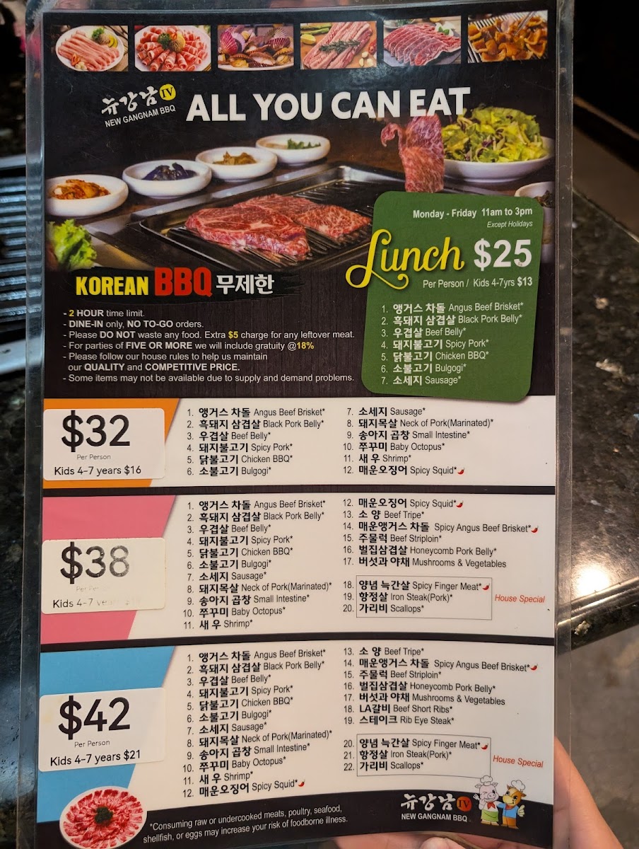 New Gangnam BBQ IV Menu