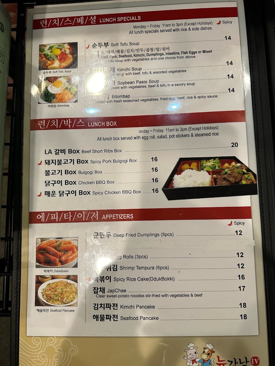 The menu at New Gangnam BBQ IV offers a straightforward yet satisfying approach to Korean barbecue and traditional dishes. With a focus on fresh, quality ingredients, it invites diners to enjoy a relaxed and interactive dining experience where grilling your own meats and savoring classic Korean flavors feel natural and unhurried.